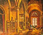 Glazes provide one of the most expressive and diverse forms of embellishment in glass gilding. This is where we paint the glass with a non-opaque glaze paint and back it with leaf. By combining paint and metal we can alter the color of the metal, build complex finishes using marbling techniques or create fully developed pictures with the reflective glow of metal shining through the various layers of paint. They are stunning with the right lighting.